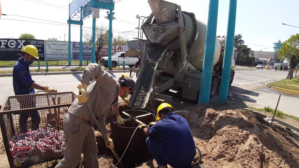 En Bolívar se lleva adelante una importante obra de recambio del tendido eléctrico sobre la avenida Calfucurá, con el objetivo
