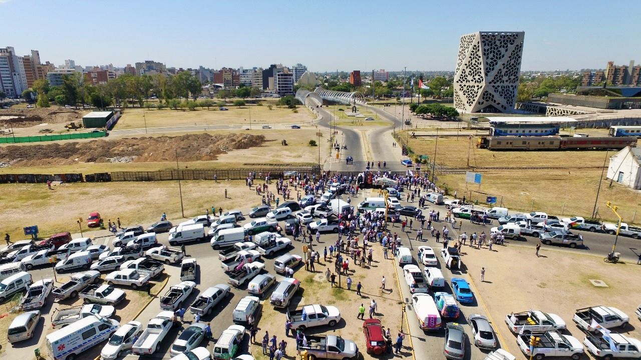 La columna de autos, camionetas y hasta ambulancias, que evidenció uno de los tantos servicios que prestan las cooperativas a